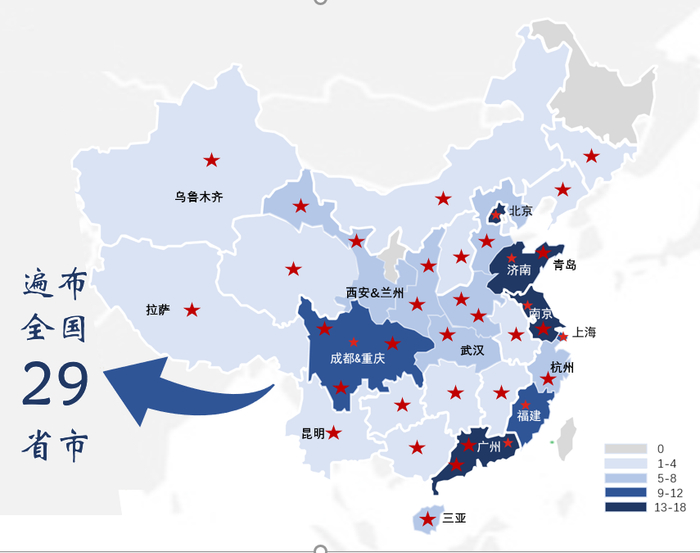 现运营近200家综合性商务酒店,遍布全国主要城市。酒店地理位置优越,文化底蕴深厚。成员酒店包括北京远望楼宾馆、南京中央饭店、上海延安饭店、广州珠江宾馆、三亚海棠湾9号度假村、成都望江宾馆等众多拥有文化特色和自然资源的大型综合性酒店。