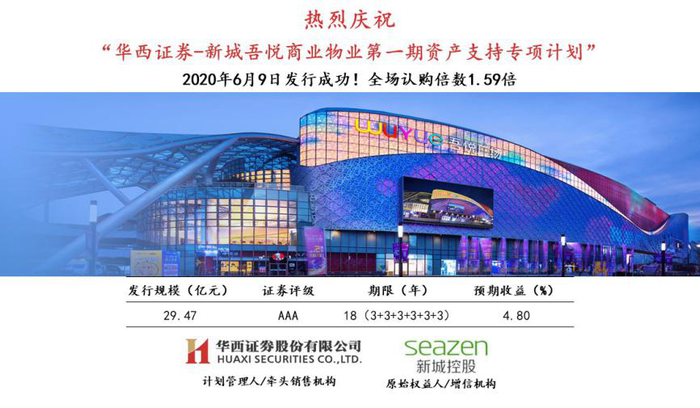 6月9日,“华西证券-新城吾悦商业物业第一期资产支持专项计划”正式发行成立,优先级的发行利率为4.80%,期限结构为3+3+3+3+3+3。由华西证券牵头推动,是新城控股2018年以来首次获批发行的吾悦广场商业物业CMBS产品。
