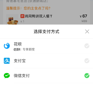 饿了么微博发出的订单结算页面显示,微信支付位列其中