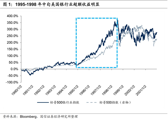 ■1990年代美国银行业走向繁荣,1995-1998年中旬超额收益明显