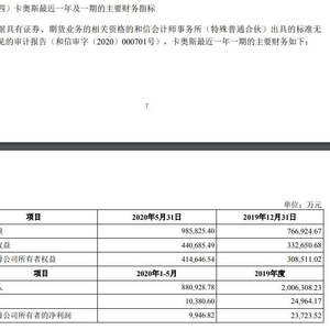 根据公告,卡奥斯2019年实现营业收入200.63亿元,净利润2.50亿元;2020年前5月实现营业收入88.09亿元,净利润1.04亿元。