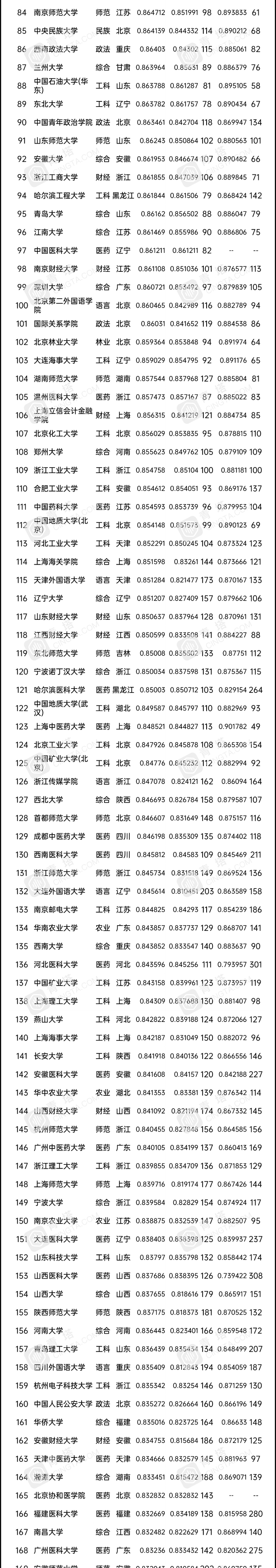 另外,位列985阵营的兰州大学,也只排到第87名,相比去年上升了9名。