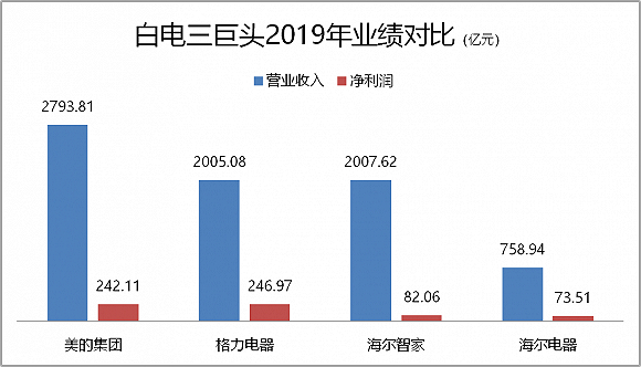 若加上海尔电器的体量,海尔智家+海尔电器2019年营业收入超过2700亿元,与美的集团相差无几,也甩开了格力电器。净利润上,海尔体系合计155亿元的规模,还有追赶的空间。