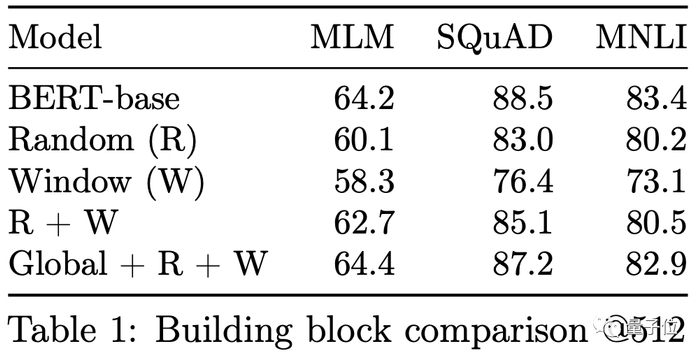 也就是说,随机+局部+全局的注意力机制融合,最大程度上接近了BERT-base的各项指标。