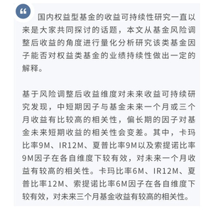 【今日推荐】权益类基金量化因子分析—风险调整后收益