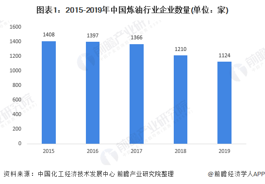 近年来,我国炼油行业企业数量逐年下降,2019年规模以上企业数量为1124家;市场竞争主体多样性增加,中石油中石化仍占主要地位;行业整体盈利能力较弱。
