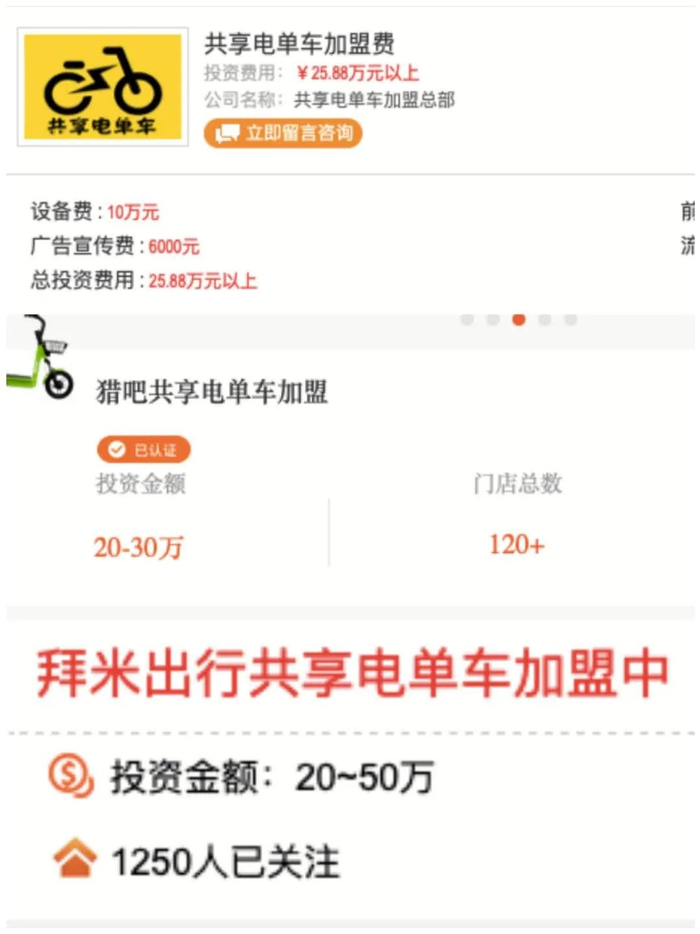 以共享电单车为名头的加盟骗局,时有发生。