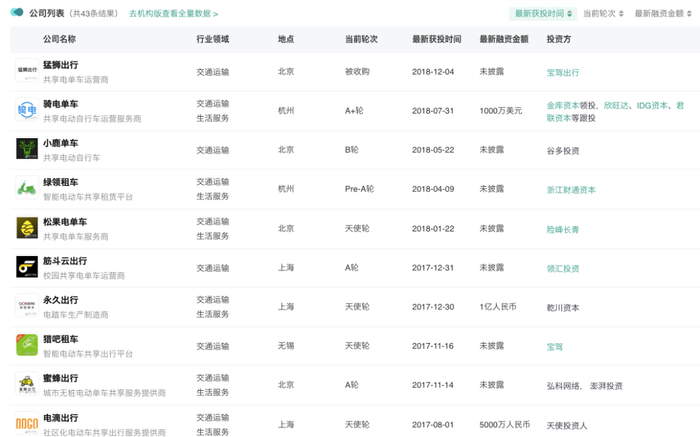 至少还有43家公司在共享电单车赛道中厮杀
