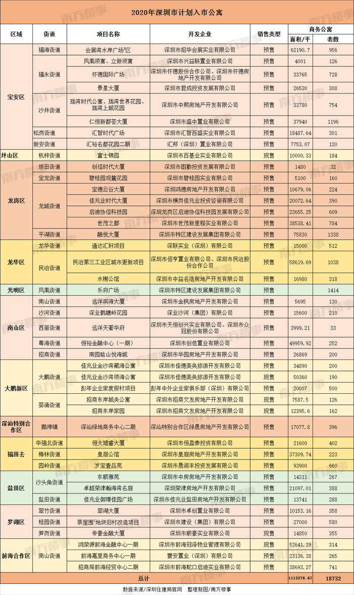 此前,深圳市住建局公示今年计划入市项目,其中提到将有18732套商务公寓入市。