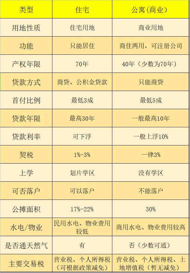 1、居住价值:住宅公摊面积大概在17%~22%之间,而商务公寓的公摊面积在30%左右,同面积的商务公寓,套内实用面积较住宅少很多。因为属于商用住房,商务公寓的水电费都是按照商业用水、用电的标准来收取的,生活成本不低。
