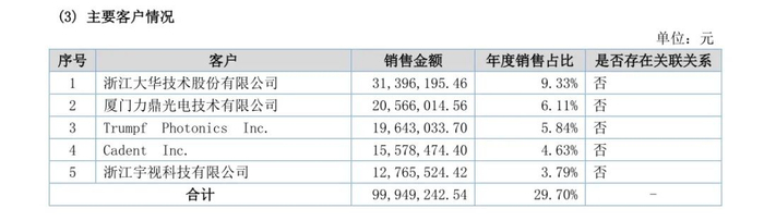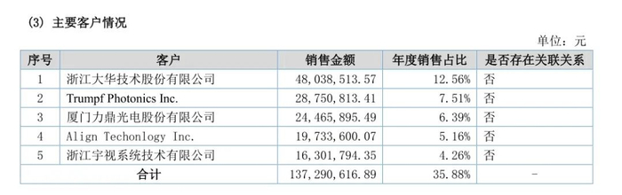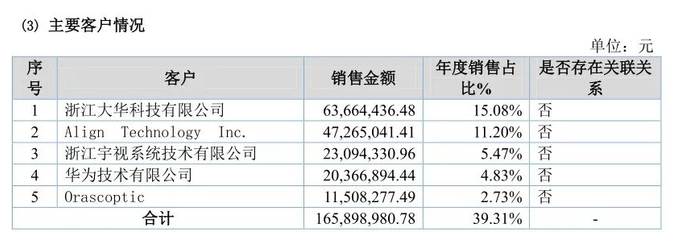 2019年前五大客户: