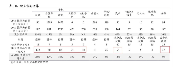 具体到福特科目前主打的光学镜头领域,根据兴业证券测算,镜头整体市场由 2016 年的