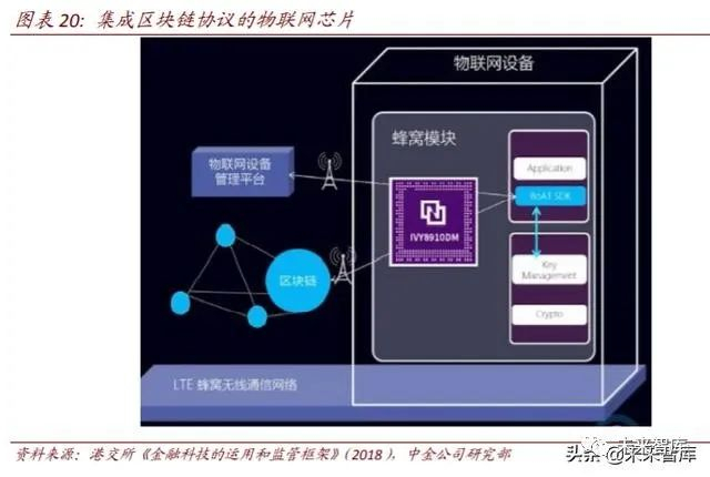 实物资产的数据化、通证化,物联网芯片或成为突破口。我们认为,通过在芯片层面添 加可信执行环境 TEE、根信任等安全能力,在固件中整合符合安全认证要求的区块链应用 框架,或将成为物联网设备的“一键上链”的可行解。例如,紫光展锐开发的春藤 8910DM Cat.1 bis 物联网芯片支持区块链技术,广和通在其基础上引入了摩联科技的 BoAT 区块链 应用框架,研制出全球首款 Cat.1 区块链模组 L610,该产品可应用于智慧农业、车联网 等行业。