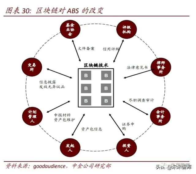 资产证券化:助力底层资产透明化、智能化管理。通过区块链技术,可对 ABS 底层资产 动态实施实时监控,若触发加速清偿或违约事件,智能合约条款将被自动强制执行,解 决“管不住”的问题;2)加速清偿或违约事件会及时通知各方,使底层资产实现透明化 管理;3)实现智能化管理,如自动对账等,简化投后管理工作,缩减管理成本。