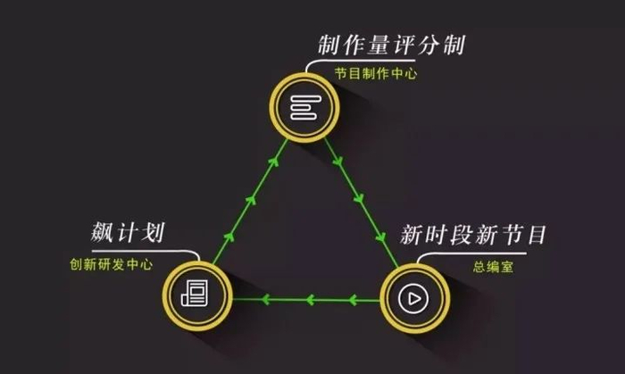 在节目制作中心,除了作为创作核心的节目团队与工作室,还另有综合部、调度部、制片部、演艺部、服化部、导摄部、演播部、内容服务部等支撑保障系统。另外,总编室也会用数据分析、编排策略与营销推广提供创新引导及创新变现。