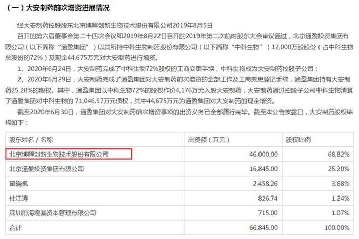 此外,根据君正集团7月28日披露的公告,公司又与近期股价5连板的疫苗概念股博晖创新颇有关联。公告显示,博晖创新正是上述君正集团认购标的大安制药的第一大股东,截至公告披露日,博晖创新在大安制药中持股比例为68.82%。