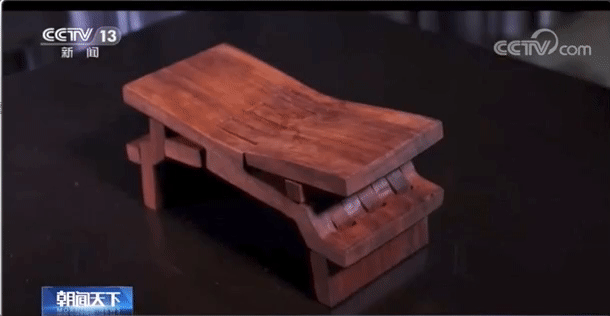当时王德文用纸箱撕出了一个简单的鲁班凳的模型,弄清结构后就跟王保成说没问题可以做了。他用一块木板,造出一体成型的折叠式木凳,展开为凳子,合上又变回一块木板,开凿出来的结构部件既是榫,也是卯。
