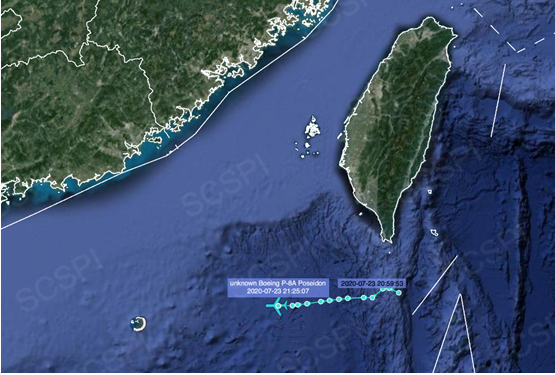 “南海战略态势感知计划”平台发布的7月23日美军P-8A反潜巡逻机飞行路线