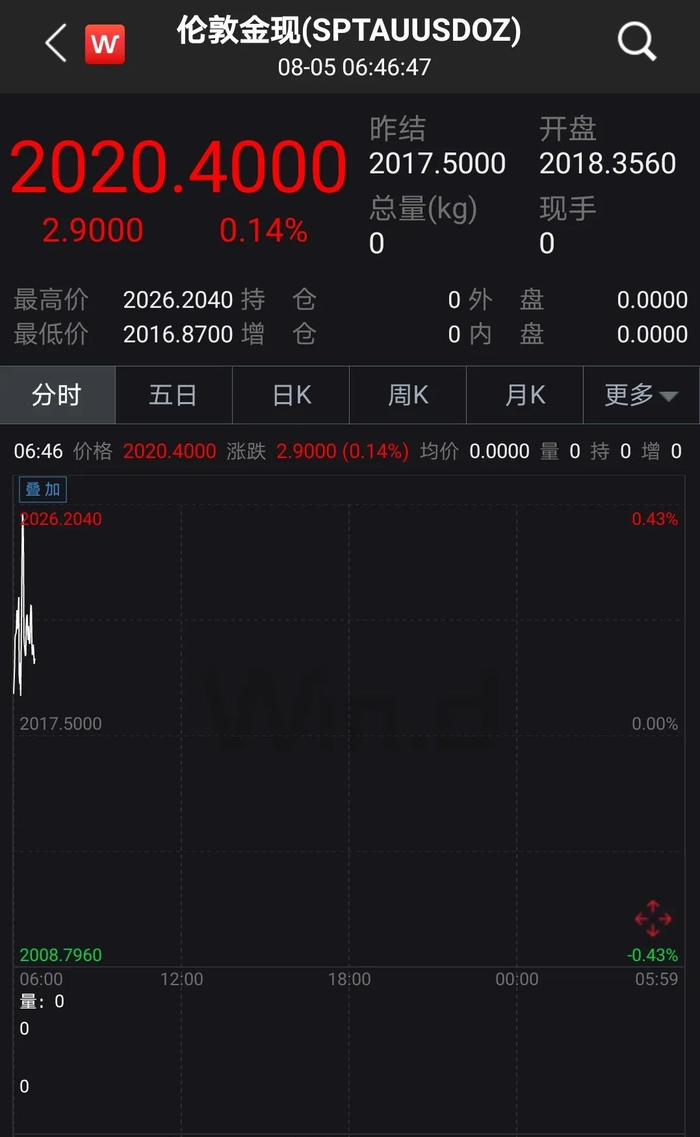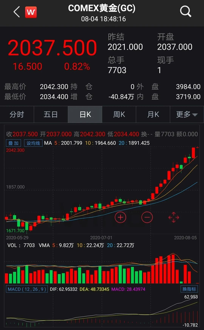 而8月5日早盘,COMEX黄金期货已经突破2040美元/盎司,日内涨近1%。