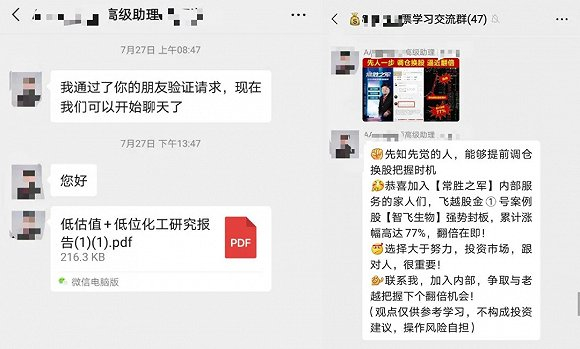燃财经调查发现,微信社群成了重灾区,这些“大师”的直播荐股往往是通过微信群、QQ群完成的。