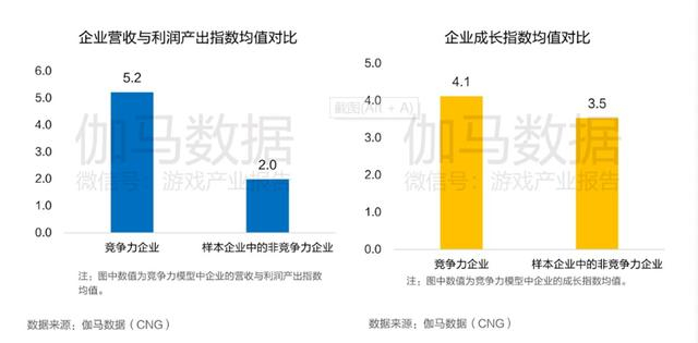 报告披露,在入选上市企业竞争力模型的30家样本企业中,竞争力15强企业营收与利润产出指数均值在非竞争力企业的2.5倍以上。而在企业成长性方面,15强企业虽然营收、市值体量较大,但在增长率上并不落于下风,并仍有一定程度的领先。据伽马数据统计,竞争力企业拥有更为丰富的产品经验和更为优质的人员配置,并形成现有竞争力,因此在产品研发、运营、发行各环节指数得分均大幅优于其他企业。