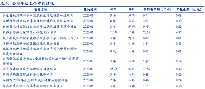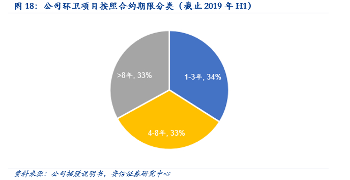 长周期项目为公司可持续发展奠定基础。环卫项目具有准入门槛低,人力密集的特点,对于中小环卫企业而言,往往需要在当地不停承接短期限业务实现扩张。根据公司招股说明书,现有环卫项目中约1/3合约期限超过8年,约1/3合约期限为4~8年,剩下1/3的合约期限为1~3年。长周期项目为公司未来5年发展提供了基础。