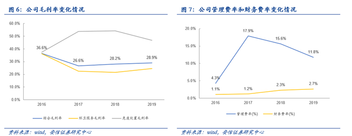 ■优秀赛道的领跑者,布局固废一体化,轻重资产并行:公司同时聚焦环卫服务和危废处置,2019年环卫服务收入占比73%,危废处置业务占比20%。环卫服务受益于市场化推进带动行业规模的高速增长以及龙头公司市占率的进一步提升,危废业务得益于“小而散”行业的加速整合以及现有产能和利用率的提高。公司两大主业均能贡献稳定的经营现金流,并且环卫服务轻资产模式,前期资本投入较少,而危废处置前期资本投入较大,环卫贡献的稳定现金流利于公司资金管理,降低危废业务大量资本开支带来的负担。