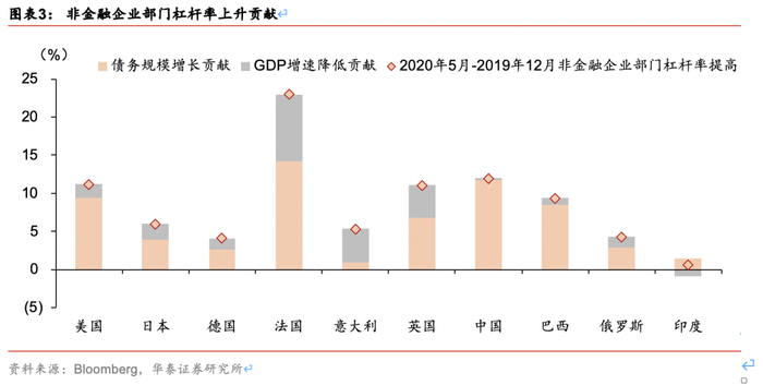 供给层面,美联储等央行的纾困政策成为非金融企业部门杠杆率的主要推动力。