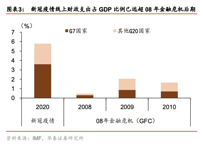 本次疫情后的政策宽松程度已远超08年金融危机期间。全球主要国家新冠疫情财政支出规模超过08年金融危机期间。货币政策方面,当前货币宽松程度亦高于08年金融危机期间。空前规模的财政政策与货币政策将直接推高政府部门与私人部门杠杆率水平,增加了债务风险。