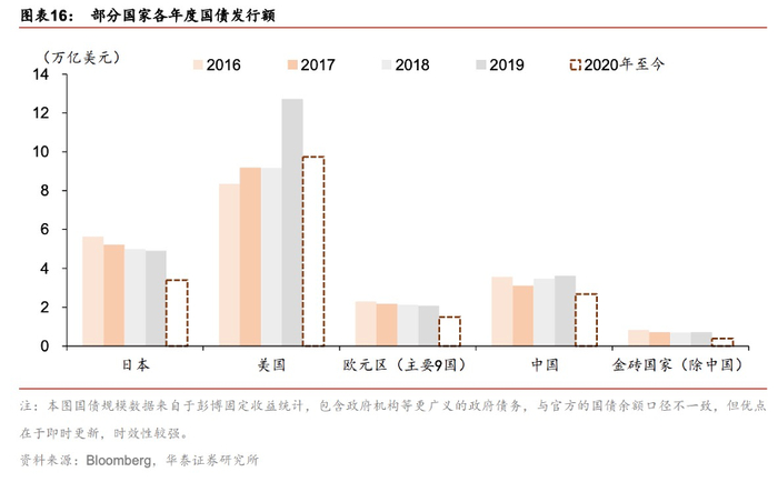 从今年来看,各国国债发行进度不同,部分国家尚有大规模的国债额度尚未发行,政府部门杠杆率料进一步提高。