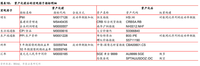 2. 资产化后的宏观因子体系更加高频、实时,且可投资,契合量化建模的需求,后文构建宏观风险配置模型时,均基于资产化后的宏观因子体系。
