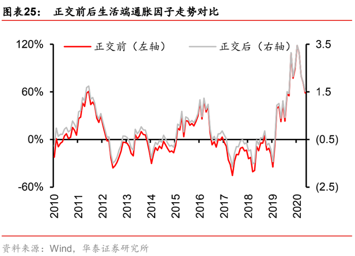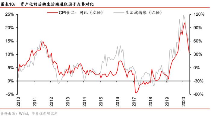 2. 生活端通胀因子:资产化前由CPI食品代理,资产化后由大宗价猪肉代理。