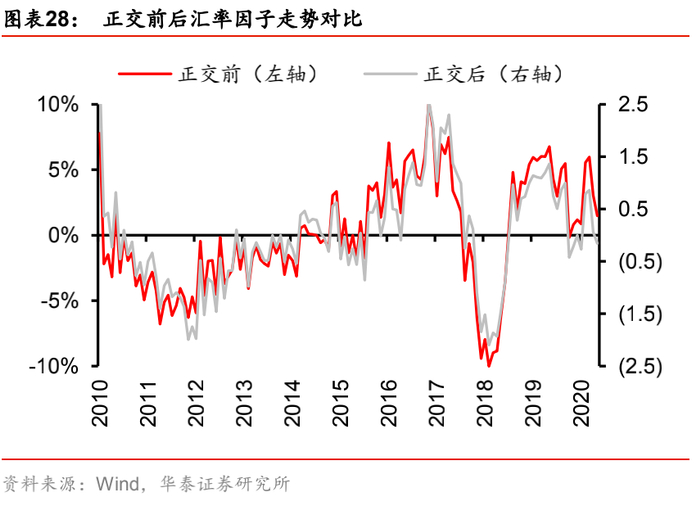 在报告《行业全景画像:宏观因子视角》中,我们采用美元兑人民币中间价来构建资产化前的汇率因子,本文采用做多SGE黄金9999、做空伦敦金现的方法来构建资产化后的汇率因子,这主要是考虑到黄金的定价权主要在国外,国内黄金价格是被动跟随,因而两者之间的价格分化就反映了汇率的变动,比如美元兑人民币升值时,人民币计价的黄金价格自然上涨。实证结果表明,资产化后的汇率因子对资产化前的汇率因子,拟合优度高达92.1%。