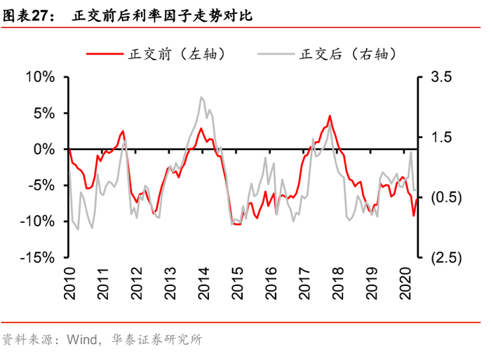 4. 对正交后各因子进行z-score标准化处理,使各因子在不同的滚动区间内具有相似的数量级和相同的波动率,便于在统一的风险管理标准下开展宏观风险配置。