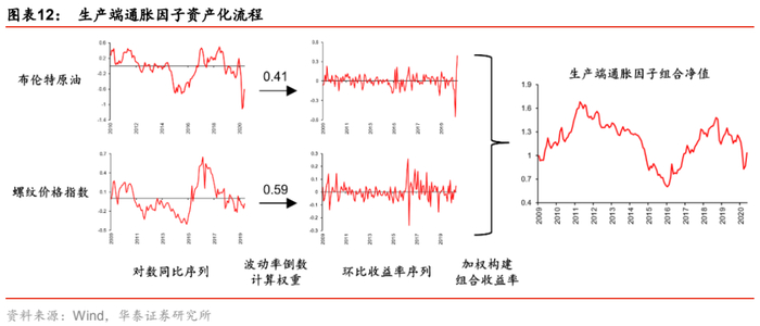 3. 生产端通胀因子:资产化前由PPI生产资料代理,资产化后由布伦特原油和螺纹钢价格指数合成(波动率倒数加权法)。
