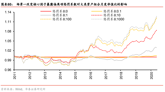 (5) 组合优化:目标风险暴露偏离值根据具体测试场景而定(因为组合在不同宏观因子上的暴露边界值不一样);惩罚系数默认取10,后文会实证不同取值的影响。