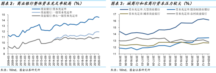 商业银行发行次级债的核心目的在于补充二级资本。根据巴塞尔协议Ⅲ框架下的《办法》要求,考虑储备资本的最低核心一级资本充足率、一级资本充足率和资本充足率分别为7.5%、8.5%和10.5%。截至2020年一季度,国内商业银行各层次的资本充足率均高于监管要求,资本充足整体达标。得益于近年来银行业大力推进IPO、定增、优先股、二级资本债、永续债和可转债发行等多渠道“补血”方式,银行整体资本充足水平呈上升趋势。