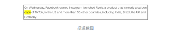 “Instagram在美国推出TikTok的山寨版——Reels” 报道截图
