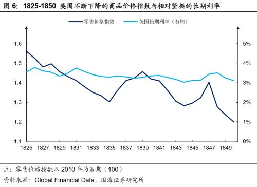 以1825年为分水岭,19世纪上半叶的英国股市由此步入了熊市区间,1821年刚刚确立金本位的英国,在未来的二十年内将会面临黄金短缺的困境。