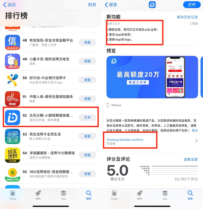 WEMONEY研究室通过乐花分期在苹果商店登记的信息提示发现,背后真正的公司是浙江钱宝网络科技有限公司(下称“钱宝科技”)。钱宝科技曾运营P2P平台钱时代金服(和其在苹果商店介绍一致),钱时代金服已于2018年7月宣布良性退出,隔年7月被杭州警方以非法吸收存款立案。