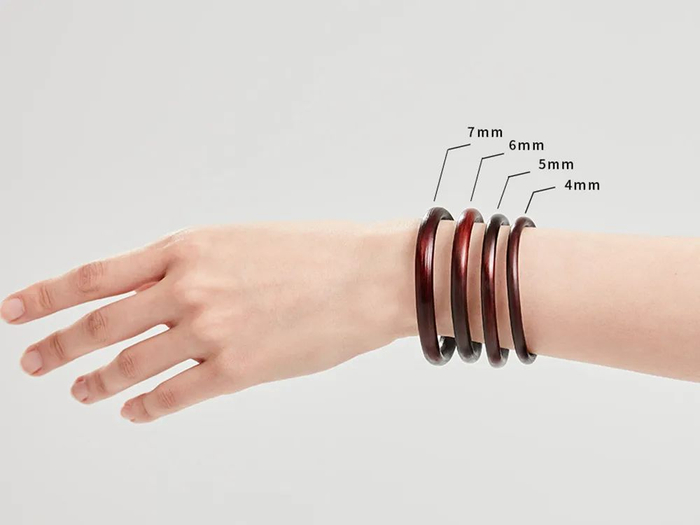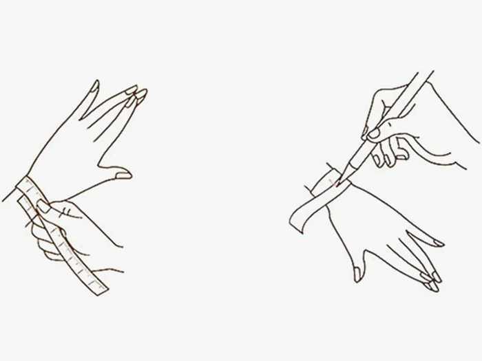 如果测出手腕15cm,那选择14~15cm这个尺寸就是你适合的圈口了。如果喜欢松一点,就再选大1~2毫米,便可轻易地戴上或取下了。