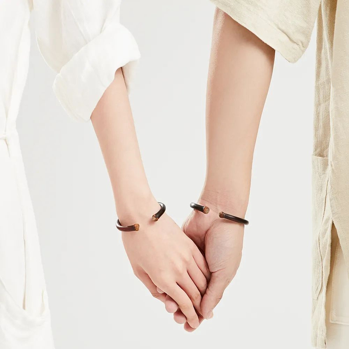 如果不经常佩戴,或者天气特别干燥时,可以在镯身上涂抹适量附赠的植物油或橄榄油,放入密封袋保存。