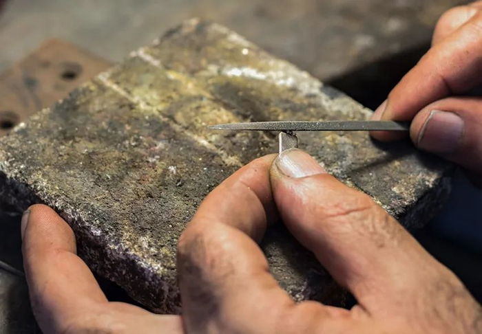 用矬子等工具,修饰多余的银料边角,并将凸处打磨至光滑。
