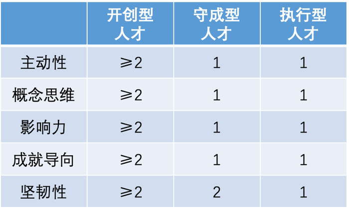 守成型人才要坚韧性达到2级,适合在成熟业务领域工作;因为成熟业务有很多细致化、重复性的内容,开创型人才还不一定能做好。