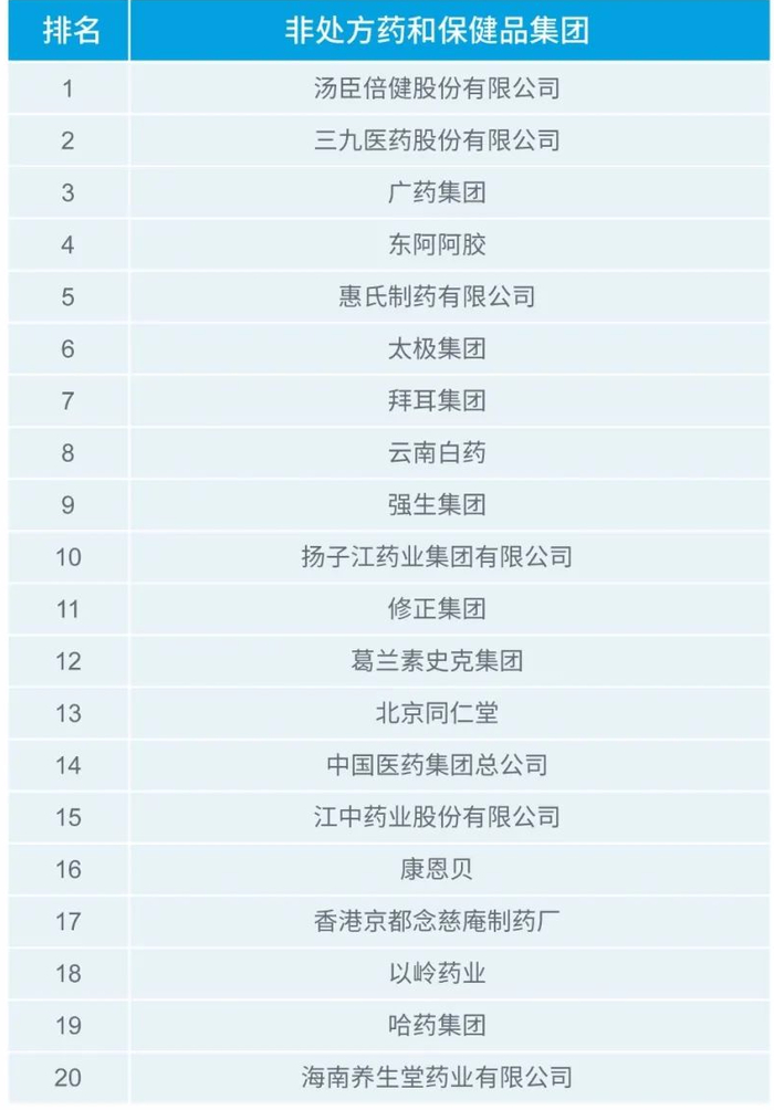 附2020年第一季度MAT销售额排名前20的非处方药和保健品集团:
