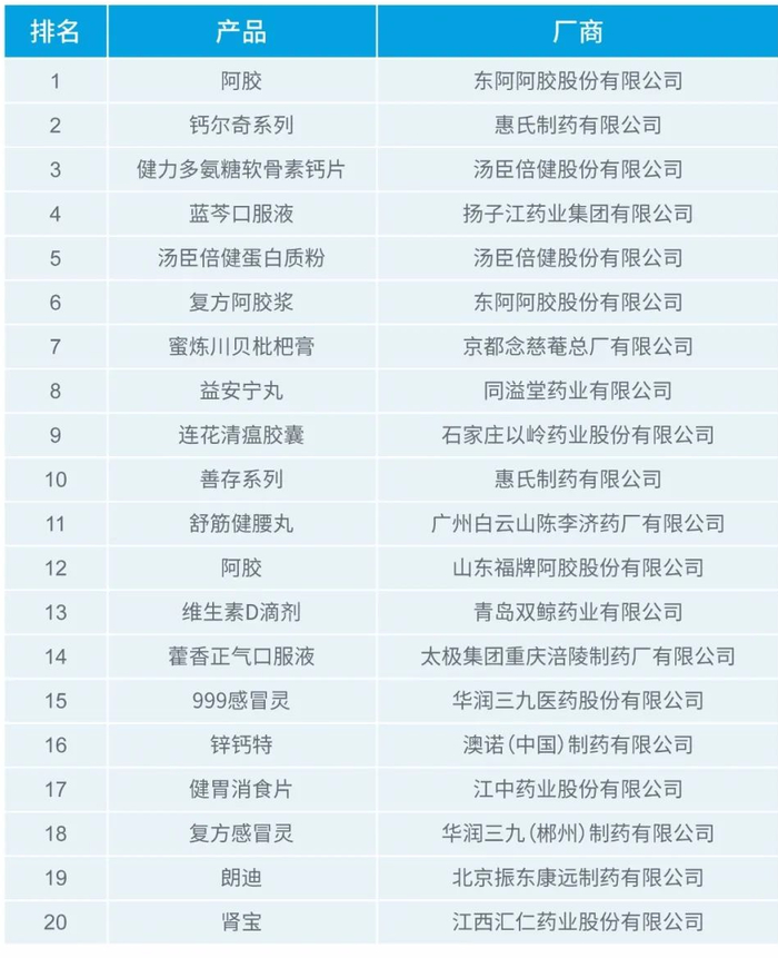 附2020年第一季度MAT销售额排名前20的非处方药和保健品名单: