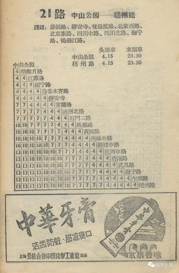 4月21日,因广中路下立交施工影响,21路双向调整走向,自原线经四川北路后,沿花园路、水电路,回广中路原线。