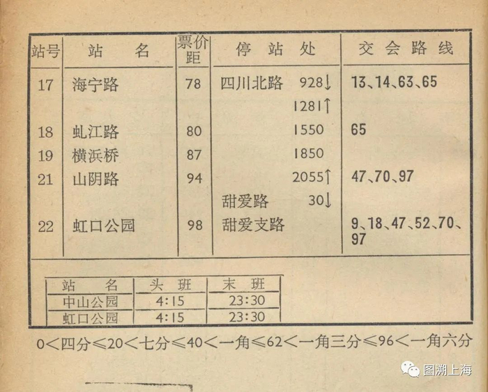 1959和1960年公交手册:21路无轨电车票价表