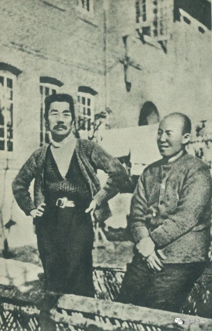 1933年,鲁迅与内山完造在千爱里内山寓所前合影