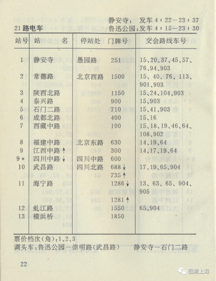 1983年公交手册:21路无轨电车